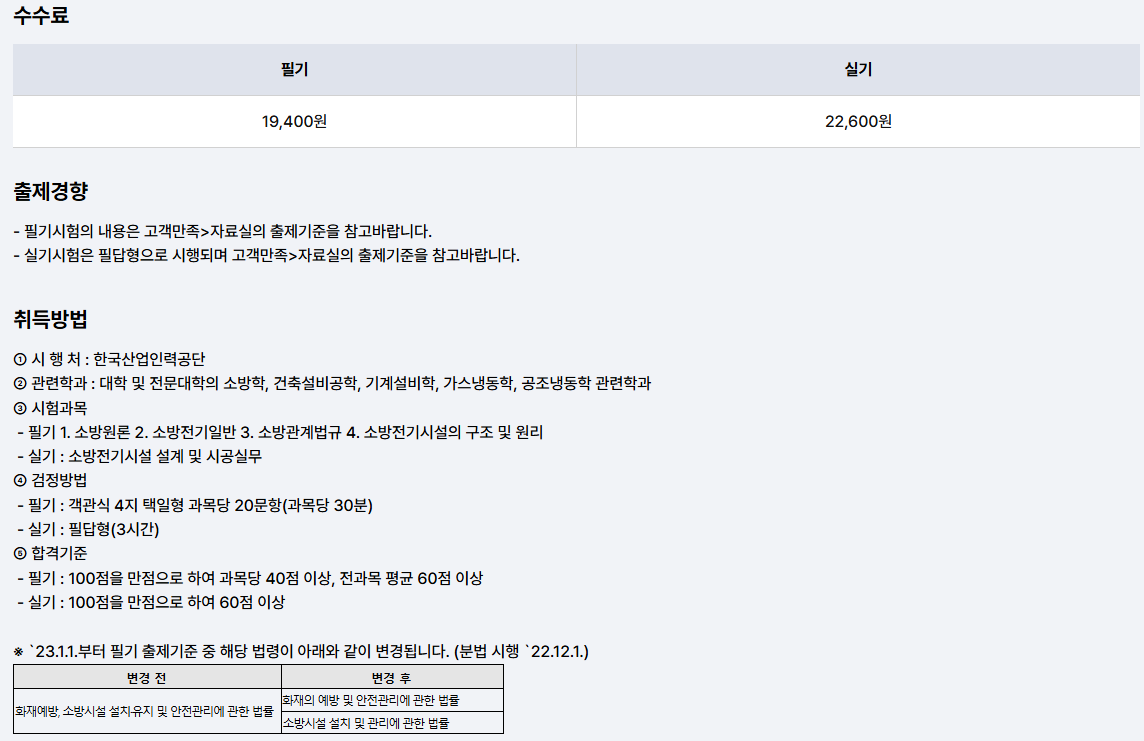아래는 소방설비기사(전기 및 기계 분야) 출제기준에 대한 간략한 설명입니다. 출제 범위와 주요 내용을 참고하시고, 더 자세한 정보는 링크를 통해 확인하세요
